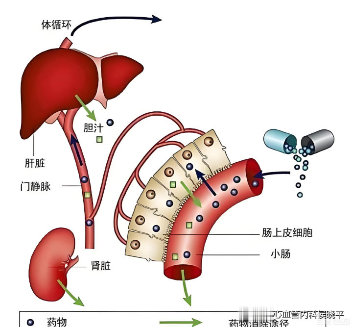反过来,半衰期长的药物,吃进来起效慢,从身体里完全清除出去需要的时间也长,差不多也得经过5~7个半衰期甚至更长时间,因为身体里还得代谢、排泄其他的药物和食物,互相之间可能有干扰,还有些药物是存在身体组织里的,排泄更慢。